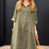 STYLE: With its wide, flowing silhouette and long sleeves, this dress combines elegance with a casual style. The loose fit flatters all body types and allows freedom of movement, making it ideal for casual outings and leisure activities.