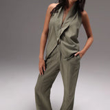 • High-Rise Linen Pants: Tailored with an elastic band and button closure for all-day comfort with a polished fit.