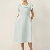 🌿 FIONA – 100% Linen Crescent Collar Midi Dress