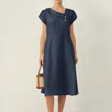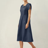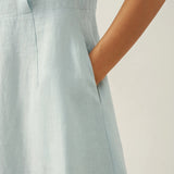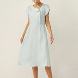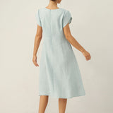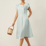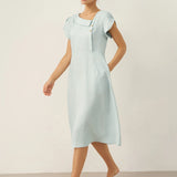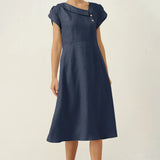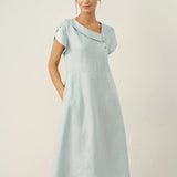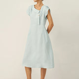 Linen Crescent Collar Flutter Sleeve Midi Dress