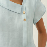 An offset placket with delicate buttons gives a stylish edge while keeping the overall look clean and graceful.